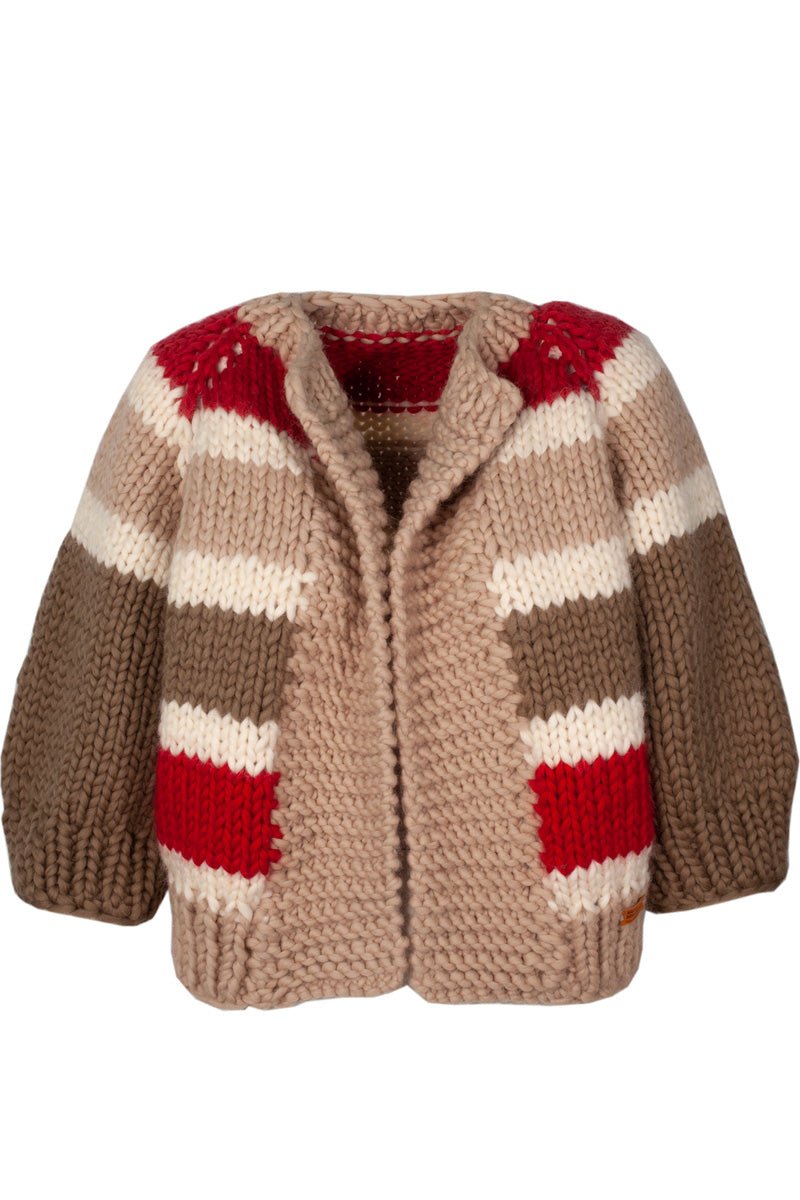 Morning. Happy, stripy, merino wool handknitted cardigan / jacket for which we tried very hard not to go completely crazy with the colors. Neutral, three quarter sleeves bring chill vibes to an otherwise enthusiastic mix of stripes. This piece is like your favourite cup of coffee, so pick your flavour.