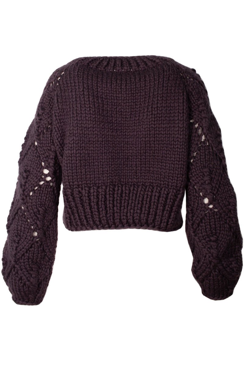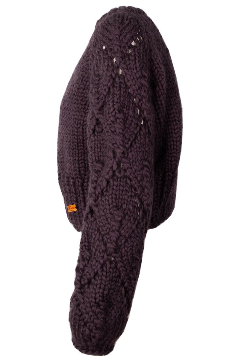 Spring is our handknitted merino wool (almost) cropped jacket. It plays well with high waisted jeans or your favorite skirt, it would even compliment an elegant dress on a formal night out. Its charm and versatility are due to its body hugging fit and chunky lace detailed sleeves, which add a modern and youthful twist to the garment without taking away from the ease and comfort of wearing it.