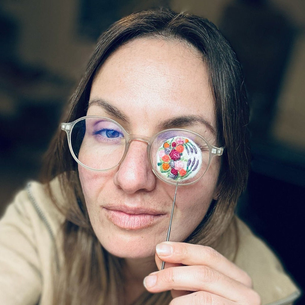 Using the intricate needle-felting technique, Larisa spends hours carefully shaping loose Merino wool fibers with a special needle until they transform into a firm, detailed "painting."